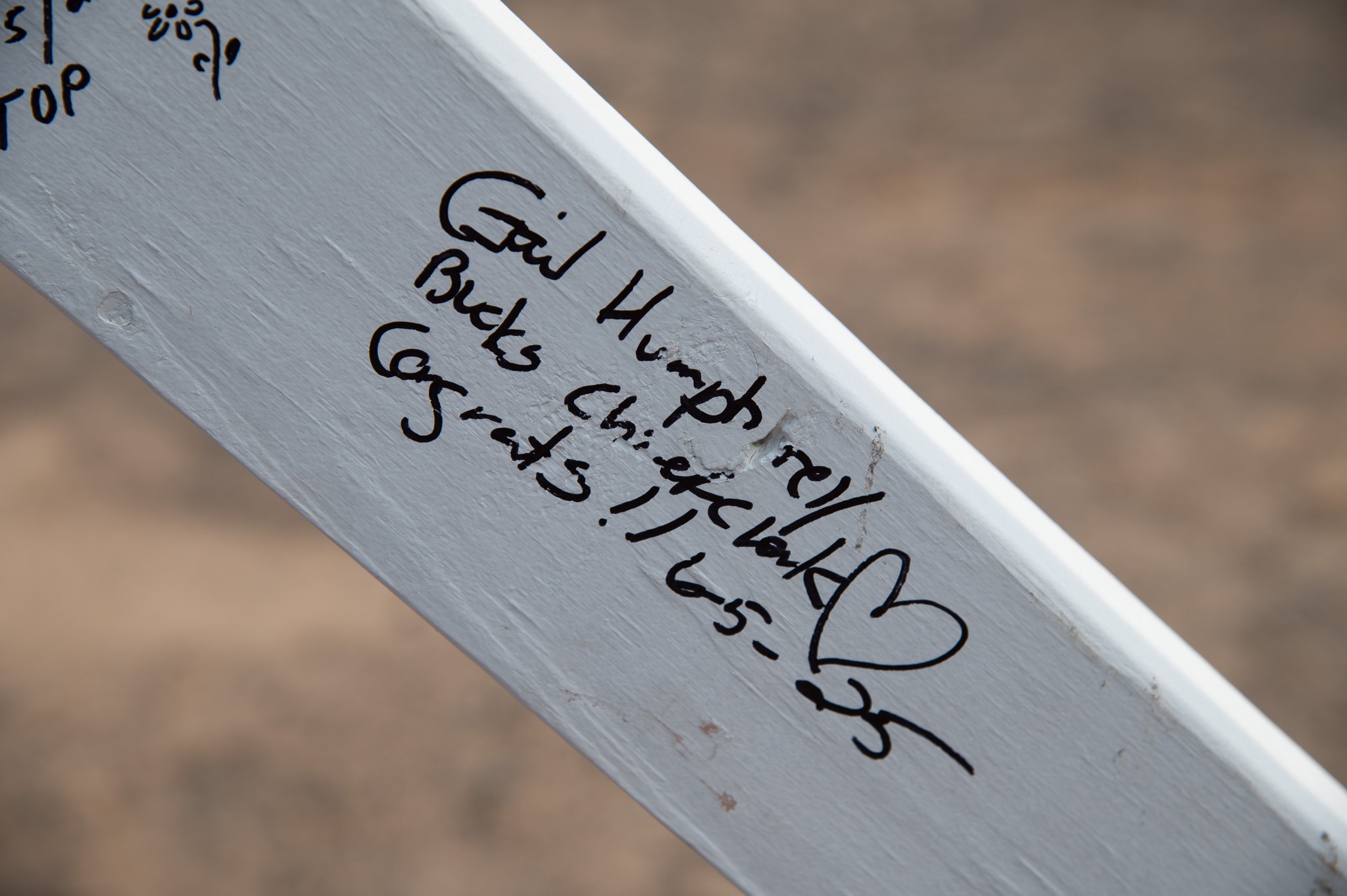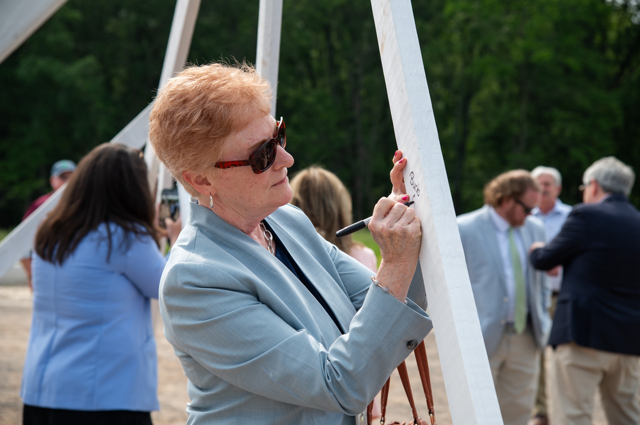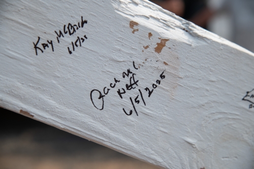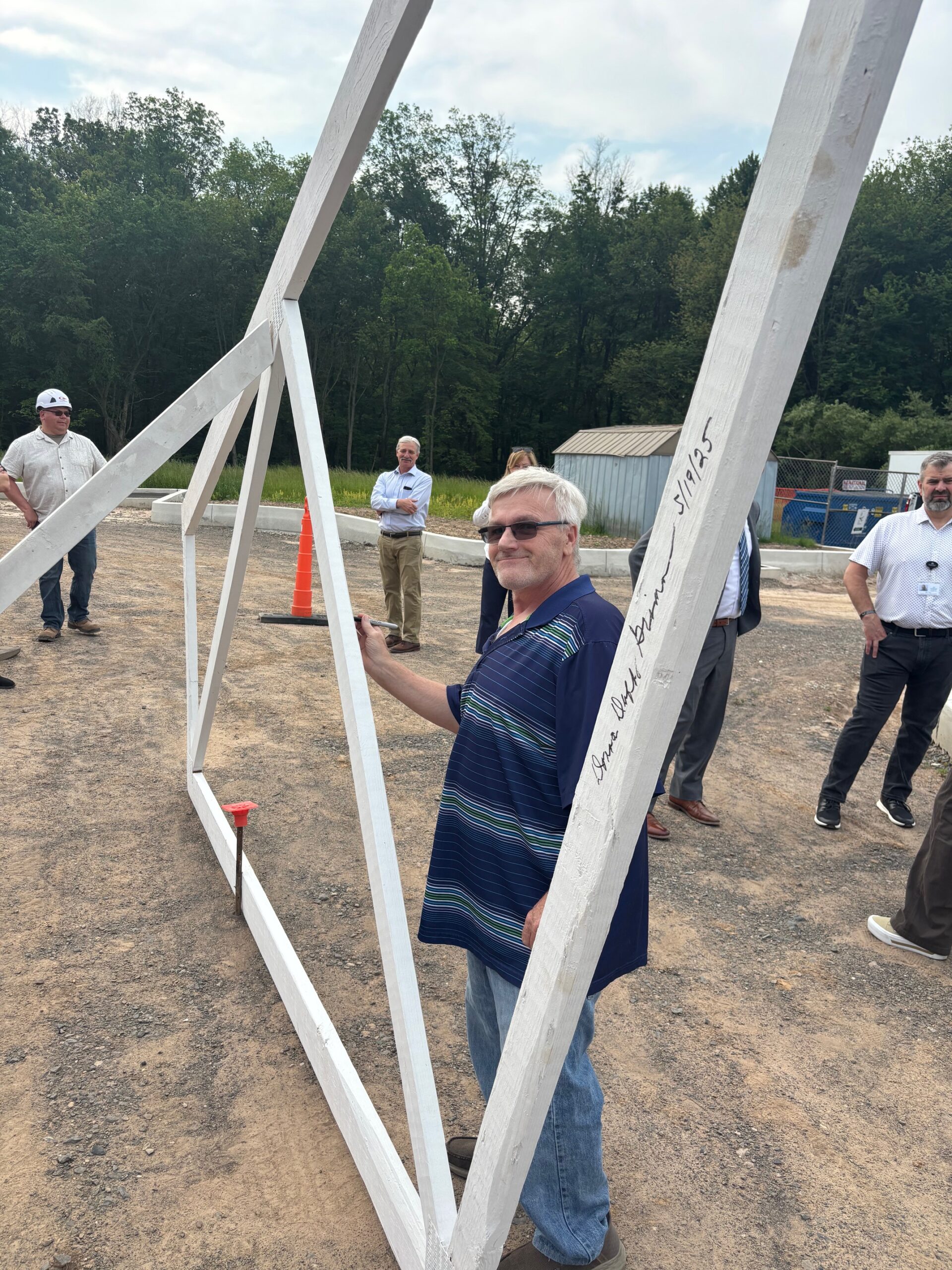 About two dozen officials signed a wooden support truss which contractors then lifted and installed in the roof of Bright Path Center. The first-of-its-kind center in Pennsylvania, which will serve families and individuals from Lower Bucks and Central Bucks, is under construction on the grounds of but separate from Doylestown Hospital, next to the existing Lenape Valley Foundation building at 500 N. West Street.