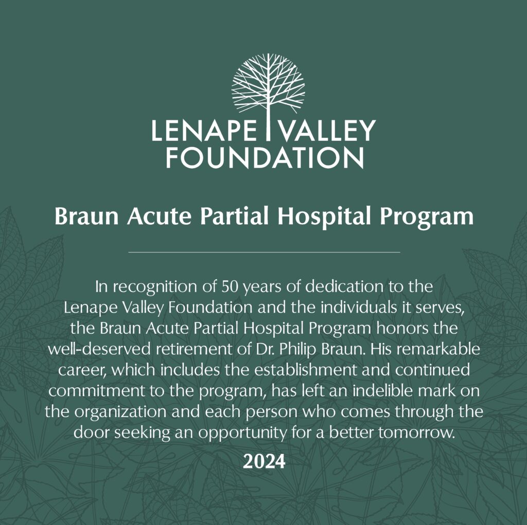 Admissions to the Acute Partial Hospital Program are scheduled, Monday through Friday, by calling 267-893-5293. For any questions or concerns after hours or on weekends, call Lenape Valley Foundation’s Crisis Services by dialing 215-345-2273.